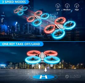 Funzioni automatiche di atterraggio e giravolte, funzione di controllo inverso dei comandi, telecomando che raggiunge centinaia di metri di distanza.