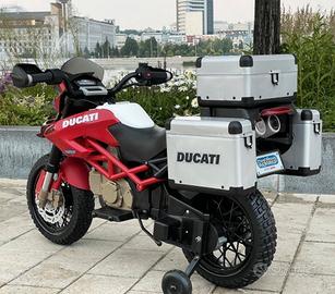 RUOTE STABILIZZATRICI RIMOVIBILI per rendere sicuri i piccoli guidatori ancora inesperti. Il telaio a vista, i grossi tubi di scarico, il motore e i decori ad effetto, regalano un tocco realistico. E’ dotata di una chiave-gioco d’accensione.
