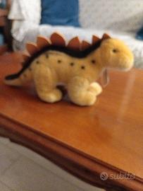 Due dinosauri in morbido peluche. Lo stegosauro e' lungo cm 33 e alto cm 15. Il tirannosauro e' alto cm 24