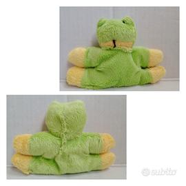 Due Peluches Gesco SPA e Sei Braccialetti Un orsacchiotto Gesco SPA con calamita nelle zampe alto 9 cm Un Ranocchio Gesco SPA senza calamite nelle zampe e con cuciture sotto la testa e sulla schiena, alto 9 cm Tre Braccialetti a cerchio rigido in metallo Un Braccialetto azzurro elasticizzato Un Braccialetto Rosa, Gommoso , in Gelatina di Silicone un po' deformato Un Braccialetto con grani ovali in legno