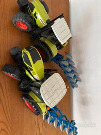 Due trattori, claas giocattolo con attrezzi