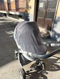 La navicella ha lo schinale con la possibilità di alzarlo, compelato con lanzariere e parapioggia sia per pa navicella che per il passrggino.
