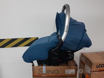 Il seggiolino (reclinabile), gruppo 0+, dotato di un comodo e robusto maniglione, comprende copertina coprigambe staccabile con zip e adattatori.