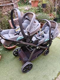 Vendo duo gemellare peg perego primo viaggio lounge ipsy dotato di ovetti con riduttori perfetto per il rientro a casa dall ospedale si sdraia molto e seduta passeggino con sacco a pelo molto comodo per l inverno.struttura chiudibile entra in tutti i bagagliai..Gli ovetti sono compatibili con la base isofix anche girevole.