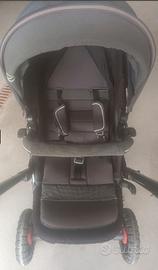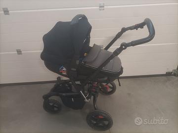 Duo molto comodo per sterrato, comprende robusto telaio con ammortizzatori , passeggino e navicella 2in1 che diventa ovetto. Completo di borsa.