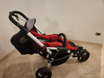 duo Jane slalom composto da passeggino fronte mamma e fronte strada, completamente reclinabile, ovetto trasformabile in carrozzina. incluso parapioggia originale, due ruote di scorta. le ruote di gomma gonfiabili sono praticissime anche su terreni sconnessi e spiaggia.