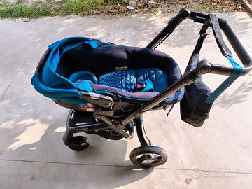 Carrozzina e ovetto (utilizzabili in auto) in un unico pezzo, con possibilità di inserire e togliere il riduttore.