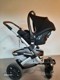 Struttura dotata di sospensione a quattro ruote con pneumatici antiforatura, di cappottina con zanzariera, di un comodo e ampio vano amovibile posizionato nella parte inferiore utile per riporre oggetti o piccola spesa. Navicella con materassino extra in bamboo (nuovo), cuscino Babycare Koala nella sua confezione originale e passeggino dotato di rain cover più attacchi.
