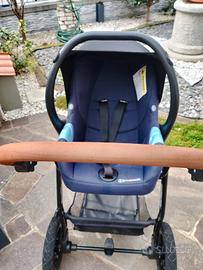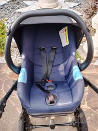Duo kinderkraft. La navicella diventa passeggino e a parte c'è l'ovetto. Ottime condizioni, usato poco. L'unica macchia che trovate è nel cestello sotto il passeggino, allego foto. Nonostante l'abbiamo lavato non viene via. Ottimo per chi fa passeggiate in montagna, in quanto le ruote sono ideali.