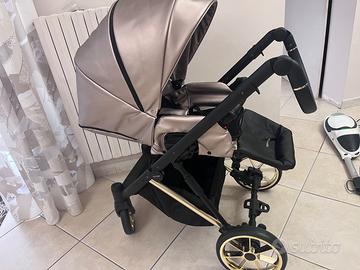 Tutto è dotato di copertura, zanzariera, antipioggia, borsa coordinata, copri piedi, cappottine allungabili. Struttura super resistente. Colore champagne rivestimento e carro nero con cromature oro