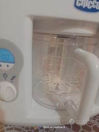 Cuocipappa,cucina a vapore intenso, omogeneizza prevenendo le coliche al bambino, conservare alimenti nei pratici vasetti, funzione di scongelamento e di riscaldamento degli alimenti. C'è manuale istruzioni,spatola,due vasetti, ricettario.