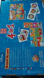 GIOCO EDUKIT MANNY TUTTOFARE DISNEY, PUZZLE 60 PZ. MEMO 32 SCHEDE, DOMINO 28 PZ. E 6 CUBI PER ALTRETTANTI DISEGNI.
