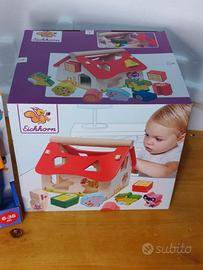 Fattoria in legno con incastri colorati. Misura: 18 x 17.5 x 18 cm Adatto ai bambini da un anno in su