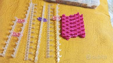 scatola con elastici per braccialetti, telai ed uncinetto (come da foto)