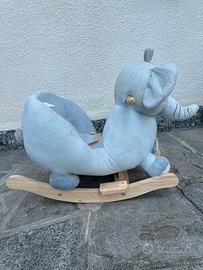 cavallo a dondolo a forma di elefante di colore azzurro, unisce sicurezza, comfort e divertimento. Il tuo bambino può sedersi sul morbido sedile in peluche con cintura di sicurezza e può tenersi saldamente alle maniglie in legno. Il movimento allegro del dondolio allena l’equilibrio e la motricità, me. Un giocattolo bellissimo.