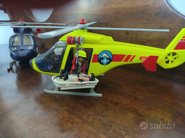 Elicottero della polizia e Elisoccorso Playmobil con piloti e personaggi per soccorso.