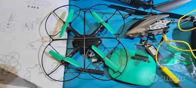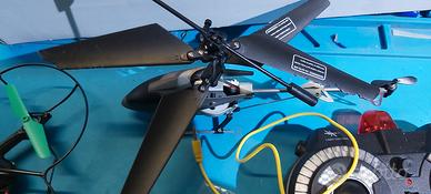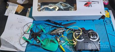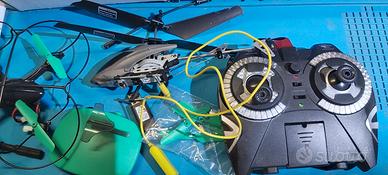elicottero e Drone giocattoli da controllare, non so se funzionano, si accendono, eventualmente usare come pezzi di ricambio. le eliche dell' elicottero sono un po danneggiate e montate al contrario.