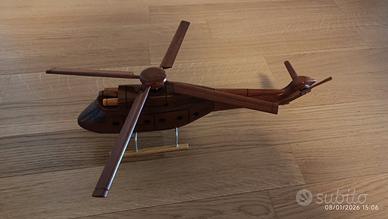 Elicottero in legno realizzato a mano, modello da esposizione o collezione o come giocattolo regalo per bambini. Pale girevoli, lunghezza 35cm altezza 13cm. Nuovo mai usato in perfette condizioni (regalo non piaciuto).