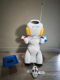 Robot Emiglio in condizioni perfette con telecomando da polso e vassoio porta oggetti.