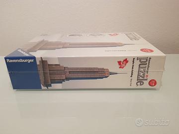 Una bellissima riproduzione in 3D dell'Empire State Building. Scopri il puzzle in una nuova dimensione. Gli edifici Ravensburger 3D Puzzle rispecchiano nei più piccoli particolari le strutture più famose al mondo. Così si materializzano, per esempio, pezzo dopo pezzo, la maestosa Tour Eiffel, il castello di Neuschwanstein o il famosissimo Big Ben, il punto di riferimento di Londra. E dopo il puzzle? Rendi il tuo puzzle 3D di altissima qualità un oggetto decorativo ideale per la tua casa. Quindi, provare per credere. Sperimentate la straordinaria combinazione di un puzzle e di un gioco di costruzioni e provate a realizzare una fantastica ricostruzione di uno dei monumenti più fotografati al mondo. Contenuto: 216 pezzi di puzzle numerati con accessori e istruzioni illustrate.Dimenisoni scatola: 28x19x7 cm Dimensioni Puzzle: 47x14x7 cm