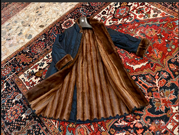 SPETTACOLARE e CALDO cappotto in pelliccia di vero VISONE, lungo colore blu navy, lavorazione a pelli interee bordatura in tessuto. Prodotto Atelier Pellicceria artigianale. CONDIZIONI: ottimo stato, indossato di rado. Veste tranquillamente da una tg44 ad una 50IT.