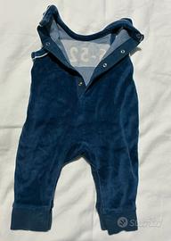 Set composto da eskimo + salopette per neonato in velluto e pile di colore blu