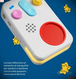Informazioni su questo articolo RACCONTASTORIE INTERATTIVO : FABA+ è un dispositivo audio che permette ai bambini di ascoltare storie, canzoni e filastrocche. Sono inclusi nella confezione: la cassa audio Bluetooth con volume limitato a 85dB, il Personaggio Sonoro FABAME, il cavo USB per la ricarica, istruzioni per l’uso e adesivi. La prima volta che si utilizza FABA+ è necessario configurare il Raccontastorie mediante l’app per smartphone MyFaba FUNZIONAMENTO: con FABA+ basta avvicinare qualsiasi prodotto sonoro al cerchio rosso per iniziare ad ascoltare! Grazie alla connessione wi-fi, l’esperienza di utilizzo è ancora più immediata. Non è necessario che un Prodotto Sonoro rimanga appoggiato sul cerchio rosso perché l’audio continui FABAME è il Personaggio Sonoro in dotazione. Con lui sarà possibile: registrare storie o canzoni con la propria voce fino a 60 minuti e creare playlist personalizzate scegliendo tra le tracce dei Personaggi Sonori attivi nella propria libreria o tra i contenuti digitali gratuiti disponibili nell’app per smartphone ROUTINE NANNA E LUCE NOTTURNA: il tasto rosa permette di accedere ai contenuti audio della routine nanna, una raccolta di brani strumentali creati da Faba in cui i suoni della natura si fondono con una musica rilassante che accompagnerà bambini e bambine nel mondo dei sogni. E’ disponibile anche una luce notturna IL MONDO DI FABA: Oltre 150 prodotti sonori acquistabili separatamente. I contenuti audio in italiano, inglese, francese e spagnolo, sono adatti a stimolare, in ciascuna fase di crescita da 0 a 10 anni, diverse competenze, tra cui emozioni, pensiero, comunicazione, apprendimento e creatività. Un catalogo di storie, fiabe, filastrocche e canzoni in continua evoluzione