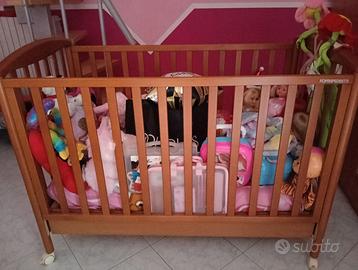 Culla foppapedretti con cassettone e barra laterale con sali scendi.