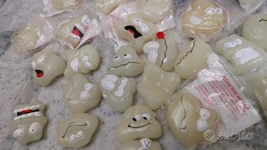 Vendo come da lotto una collezione completa ed introvabile di 16 fantasmini fluorescenti anni 90 usciti dagli ovetti Kinder Sorpresa dell'epoca. Si trattano di introvabili sorpresine vintage che sono state collezionate tutte e conservate perfettamente come appena uscite dagli ovetti! Sono persino presenti 12 fantasmini extra ancora sealed! Mai aperti. Il totale del lotto è di 28 fantasmini totali (tra cui 16 che compongono la collezione e 12 extra doppioni, da usare come riserva nel caso dovreste perderne qualcuno!).