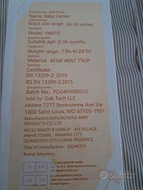 Fascia 0/36 mesi. Regge fino a 12kg. usata ma in ottime condizioni. si trova a Cagliari
