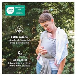 Fascia porta bebè in ottime condizioni, certificata STANDARD 100 by OEKO-TEX (Nr. 20.0.23116) e 100% priva di sostanze nocive. Morbida e comoda, facile da legare.