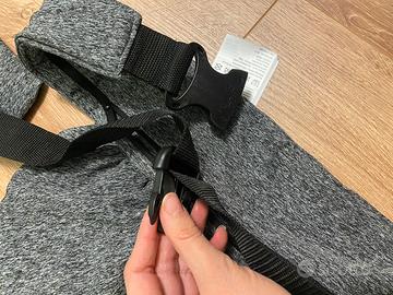 Fascia/marsupio ibrida praticamente mai usata…tessuto molto elastico, fascia regolabile in vita con tasca portaoggetti, poggia testa per il bimbo, istruzioni stampate all’interno della fascia stessa, sacchetto per riporla. Utilizzabile fin dalla nascita, da 3,5 fino a 15 kg. Lavabile in lavatrice.