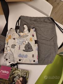 fascia neko, semi strutturata, facile da indossare e usare, da bambini molto piccoli ai due anni, possibile portarli davanti e dietro. nuova costa 150 euro