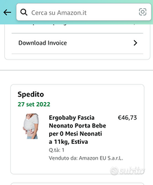 Vendo fascia originale Ergobaby, adatta da 0 mesi fino a 11 kg.