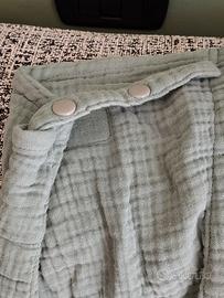 Materiale: È realizzato in morbida mussola di cotone biologico, che lo rende soffice, accogliente e particolarmente adatto per l'uso anche in estate grazie alla sua traspirabilità.