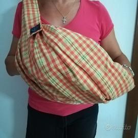 una fascia in resistente tessuto di cotone o altri filati naturali (lino, lana ecc) - chiusa con un anello di sicurezza in acciaio inox. Un'unica pezza di tela senza giunture, piegata ed imbottita, creata appositamente per fornire al bebé ed alla sua mamma la massima sicurezza, salute e praticità.