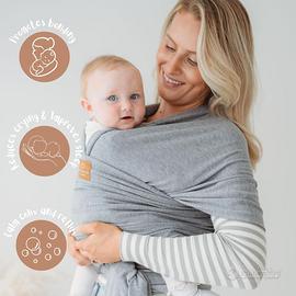 Fascia porta bebè per neonati e bambini piccoli di prima qualità, testata per la sicurezza, adatta come copertura per allattamento, morbida ed elastica, in taglia unica e colori neutri (Grigio medio)