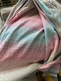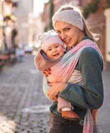Didymos Aurora è la fascia rigida più richiesta, con portata fino a 18kg, puó essere utilizzata fin dalla nascita. È in 100% cotone bio con dei colori meravigliosi.