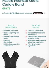 Vendo fascia della koala baby care in ottime condizioni, colore nero compdissima perche basta semplicemente vestirla come una maglietta e regolare in base alle esigente…..è davvero il top per chi è alle prime armi con il baby wearing…ho ancora la scatola in caso la voleste regalare a qualcuno. Per altre informazioni o per foto contattatemi ☺️