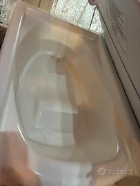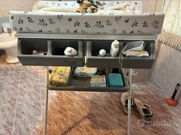 fasciatoio 2 in 1 con vasca da bagno integrata. Per utilizzare la vasca da bagno, è sufficiente ripiegare il fasciatoio! La vasca da bagno ha una forma anatomica. Viene fornito anche con un tubo di scarico per drenare l'acqua dopo il bagno.