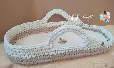 Fasciatoio all'uncinetto fatto a mano realizzato con base in legno e cordino in cotone riciclato certificato OEKO-TEX standard 100 .