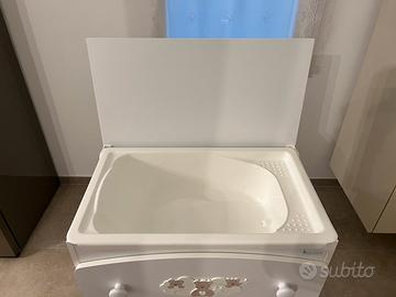 Piano fasciatoio in PVC 4 ruote piroettanti 3 cassetti capienti, con guide in metallo Vaschetta Dimensioni: 76 x 49 x 91 (h) cm Buone condizioni