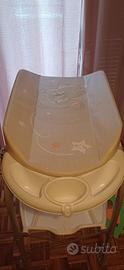 Vendo Cam bagnetto fasciatoio in ottime condizioni. Dimensioni da aperto H 104x L 95x P 54. Dimensioni da chiuso H 93x L 83x P 31. Adatto fino ad 11 kg. Ha 4 ruote, di cui 2 dotate di freno. 2 sedute anatomiche e antiscivolo. 1 doccino di plastica.