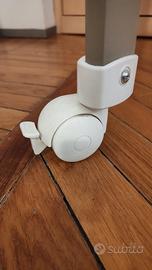 Comprende ripiano inferiore con vani porta oggetti ed è dotato di 4 ruote di cui 2 con freno.
