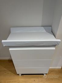 Faciatoio Italbaby con vaschetta bagnetto integrata. Cassettiera con 3 cassetti