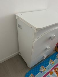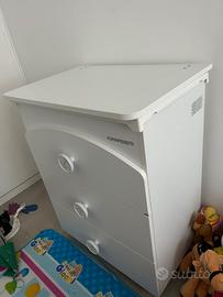 Vendo fasciatoio con vaschetta estraibile per il bagnetto, tre cassetti e piano base fasciatoio con materassino anch’esso estraibile.