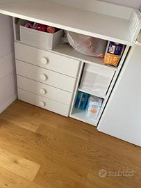 Fasciatoio con possibilità abbassando il ripiano si trasforma in una scrivania comoda e spaziosa, usato ma tenuto bene, in più c’è la possibilità di avere il materassino per il cambio, se interessati(+15€)