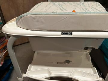 Morbido fasciatoio con sistemaanti-ribaltamento, include vaschetta Baby Bagno dotata di portasapone e porta spugnetta, con 2 sedute anatomiche e antiscivolo (una inclinata per bimbi da 0 a 6 mesi e una seduta con braccioli per bimbi da 6 a 12 mesi) adatto fino a 11 kg.