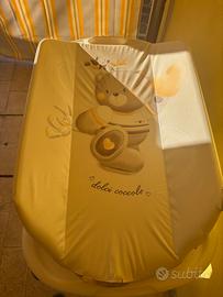 Fasciatoio con sottostante vaschetta per il bagnetto, in buone condizioni generali. È stato usato ma è ancora perfettamente funzionante e stabile. Struttura solida, comodo per il cambio del neonato e pratico grazie alla vaschetta integrata sotto il piano. Presenta normali segni di utilizzo.