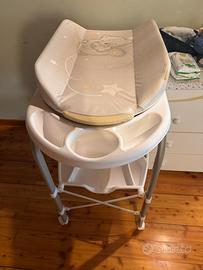 Vendo Bagnetto, fasciatoio marchio italiano cam, ricco di funzioni: morbido materassino con la classica rottura di tutti i fascistioi della stessa categoria (vedi foto), utilizzibaile perfettamente così o facilmente sostituibile. vani portasapone e porta spugnetta, tappo per scarico dell'acqua. Ideale anche per i bagni più piccoli, può essere posizionato sui sanitari. Chiusura compatta per ottimizzare gli spazi